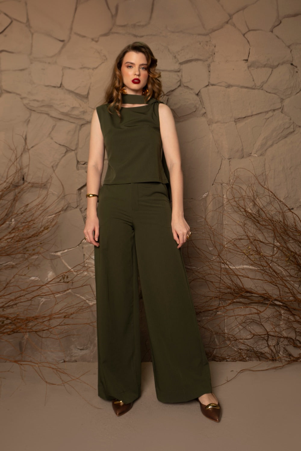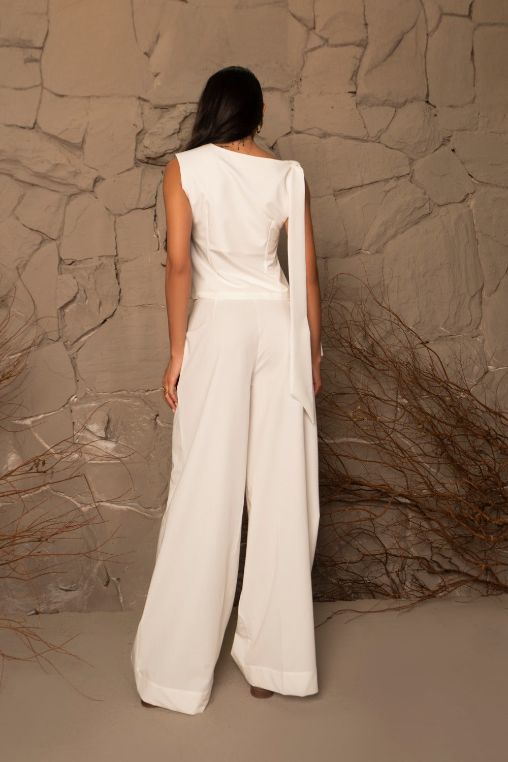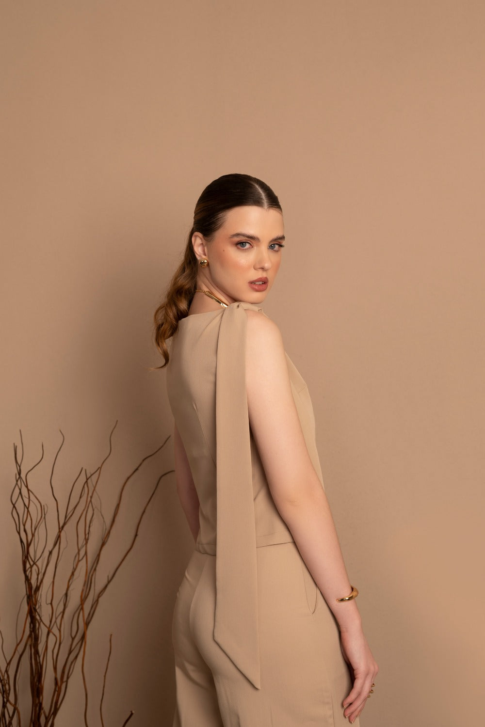 Com um design fluido e sofisticado, as faixas que adornam os ombros trazem movimento e originalidade à peça, proporcionando um visual único e marcante.