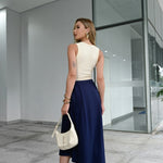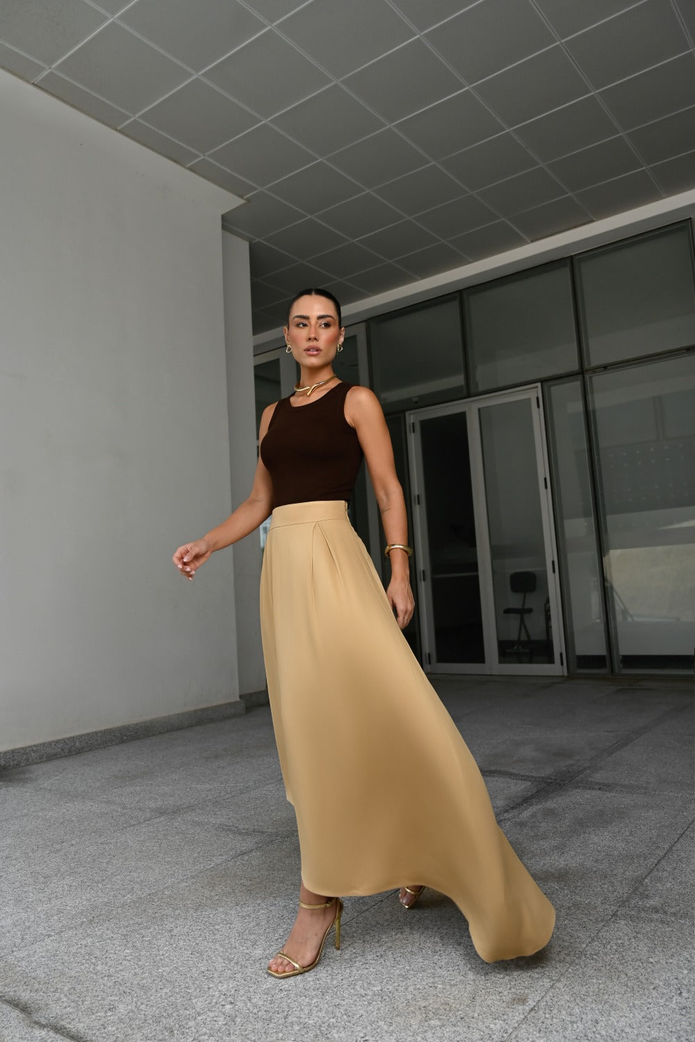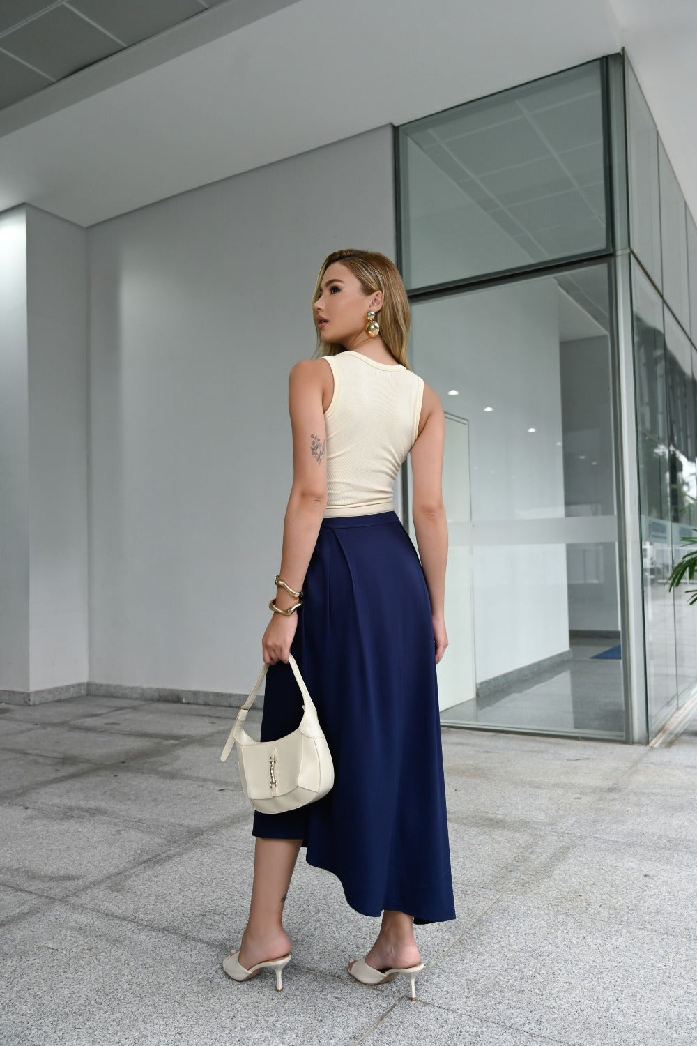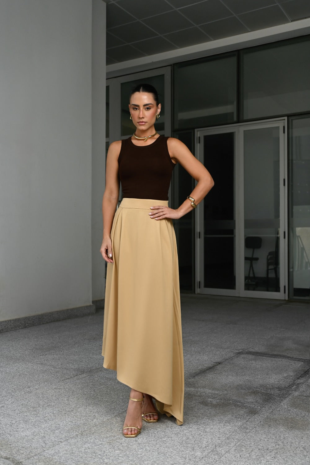 Com um design fluido e sofisticado, a Saia Midi Assimétrica traz uma nova interpretação do clássico. O corte diferenciado adiciona um toque de dinamismo ao look, criando um caimento que se adapta ao movimento do corpo com leveza e graciosidade.
