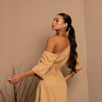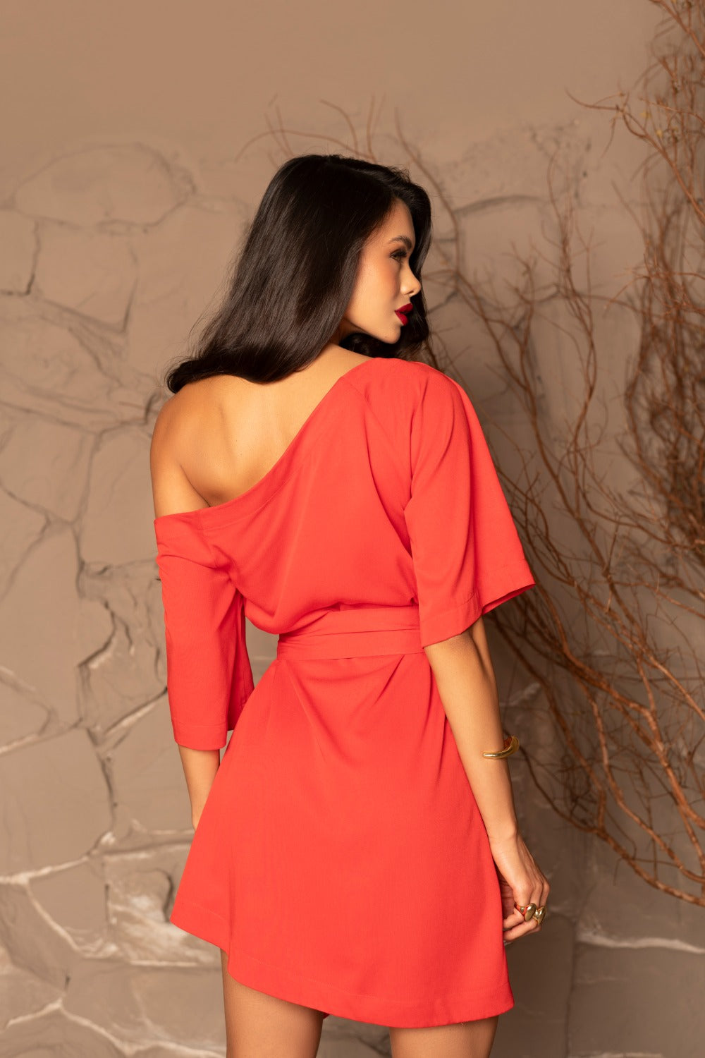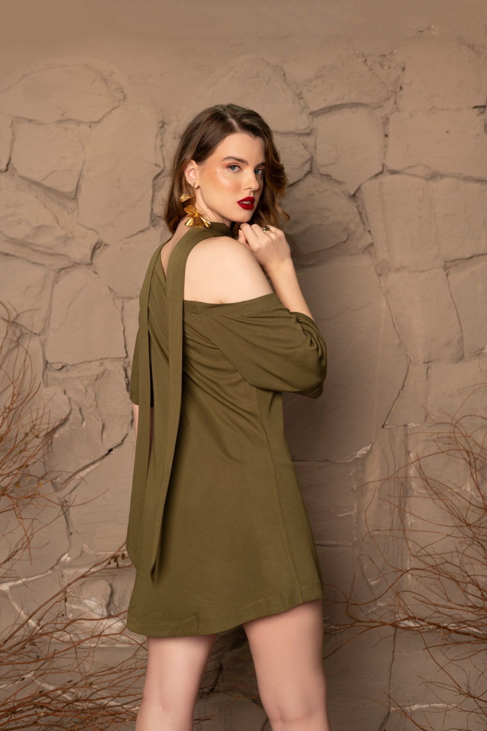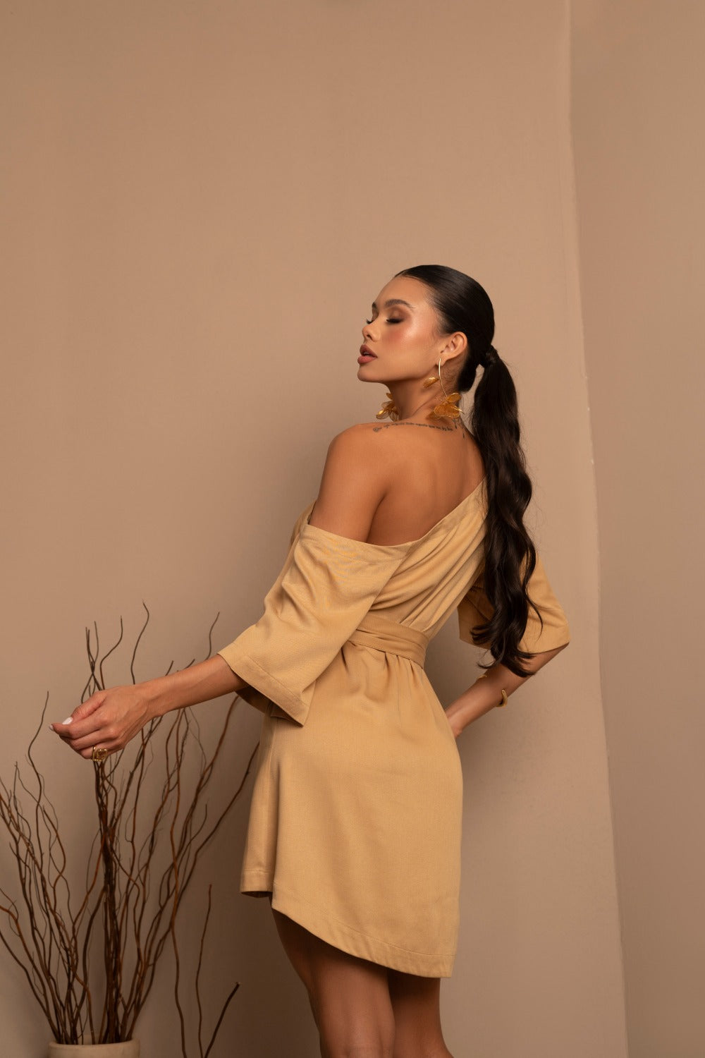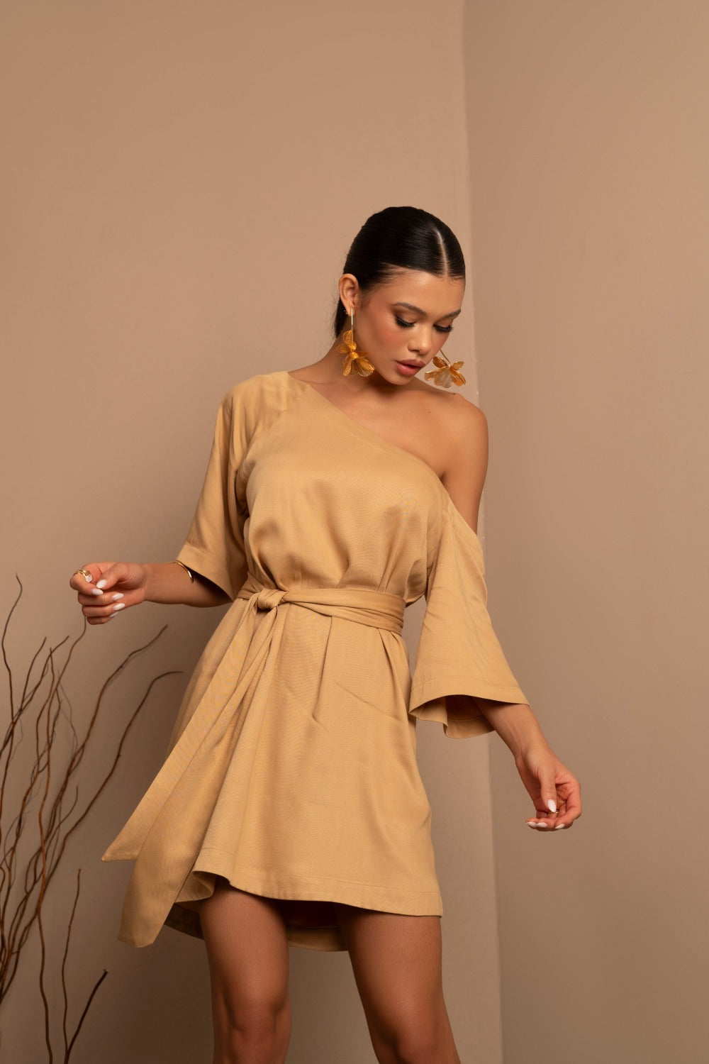 Este vestido curto é confeccionado em rayon twill, um tecido de alta qualidade que oferece um caimento leve e sofisticado. As mangas raglan proporcionam um design contemporâneo. Acompanha uma faixa versátil que pode ser usada de diversas formas.