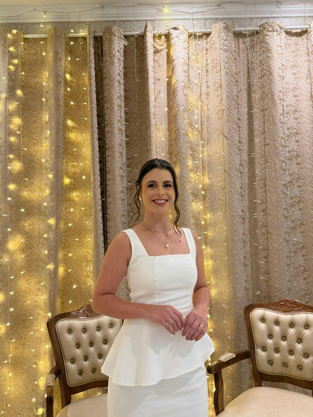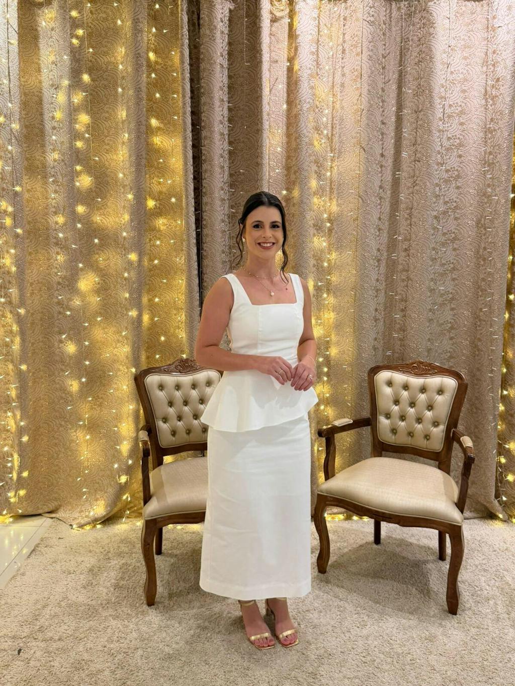 Estou completamente encantada. O vestido veio impecável graças ao atendimento da equipe,fazendo questão de medir várias vezes as referências de tamanho. A agilidade da entrega fez com que meu vestido chegasse a tempo do casamento civil. Costura impecável, tecido perfeito. Só elogis.