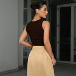 Uma peça indispensável no guarda-roupa moderno. Seu design minimalista permite combinações infinitas – seja com alfaiataria para um look refinado, jeans para um visual casual ou saias fluidas para um toque de feminilidade. Um básico nada óbvio, ideal para todas as ocasiões.